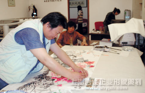 江苏省人大常委会委员、中国书法家协会会员、江苏省书法家协会理事、南通市文联副主席、南通市对外友协副会长、南通市书法家协会主席陈云及中国美术家协会会员、《当代美术》主编、中国画百家之一、江苏省花鸟画研究会理事、市人大代表、政协常委、政协书画会常务副会长,书画院院长王奇寅于14日来我公司做客.即兴作画。
