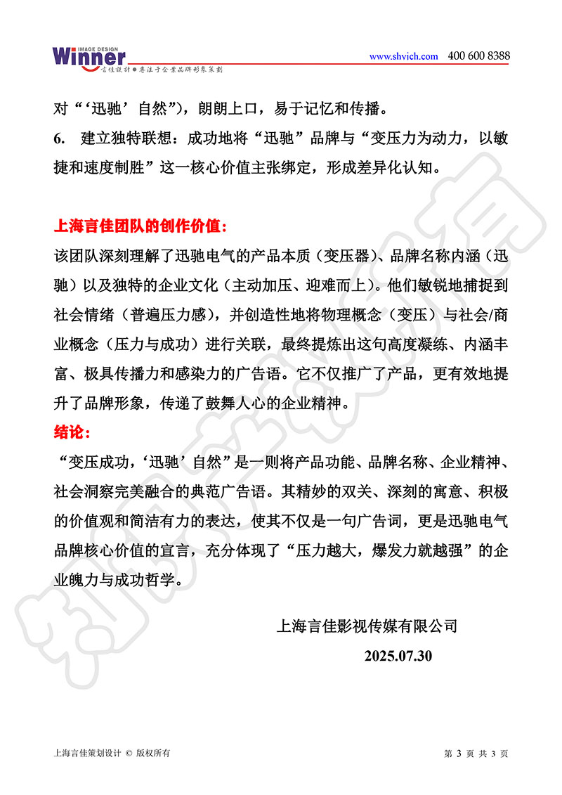 山东迅驰电器的广告语创作理念